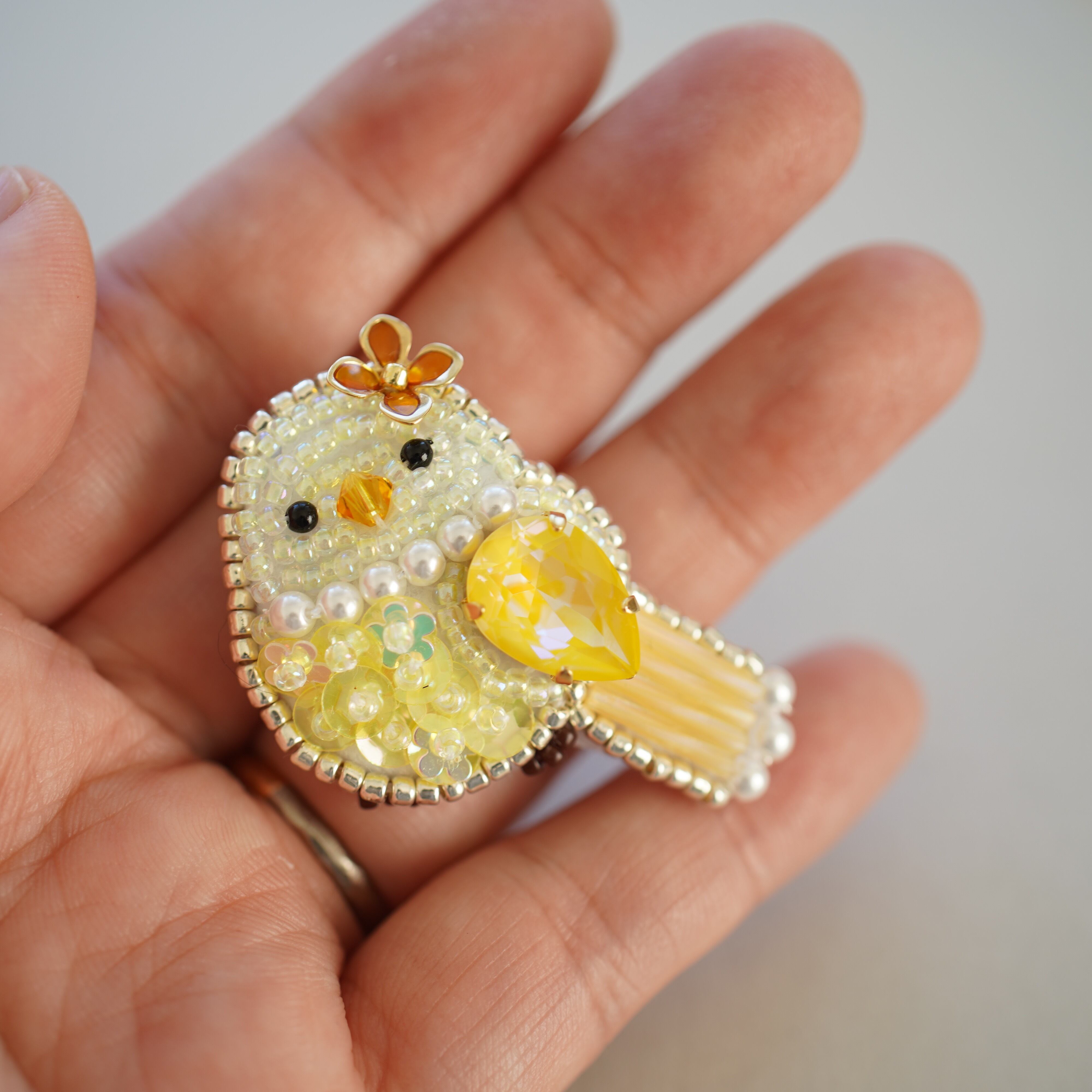 キラキラと輝く「きいろい鳥」をモチーフにしたブローチです。