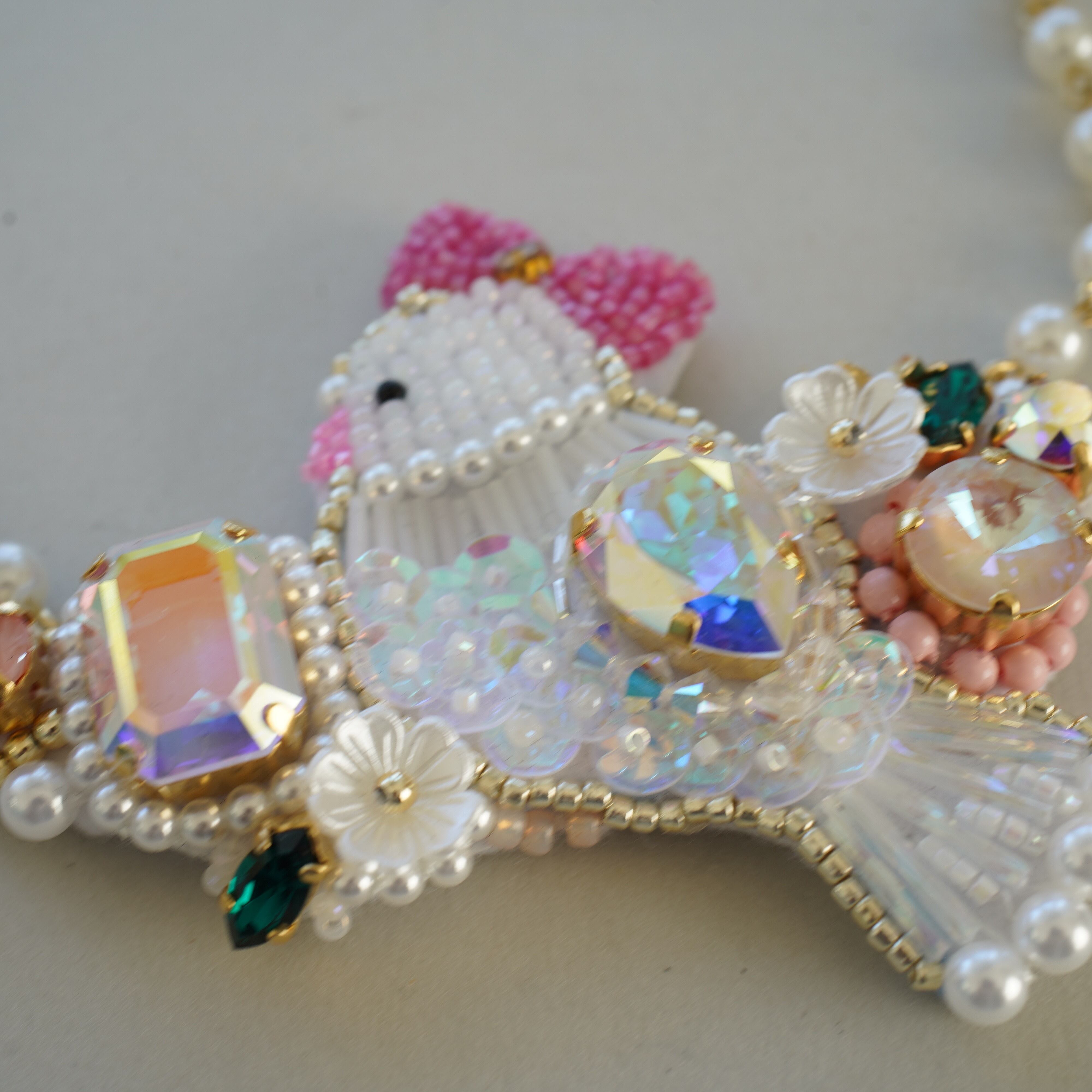 鳩子さんをモチーフにした、華やかなネックレスです。