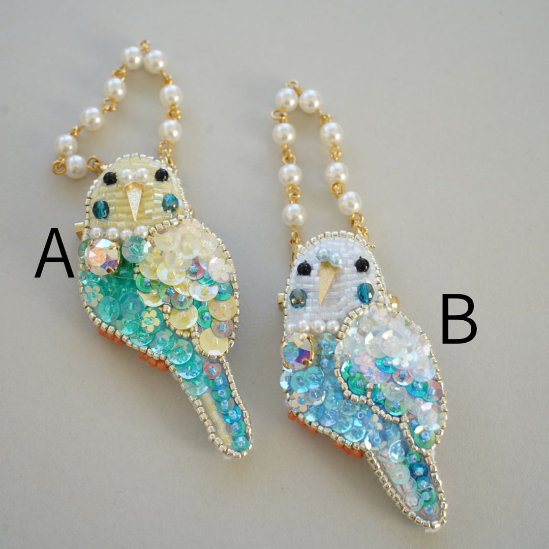 キラキラと輝くセキセイインコをモチーフにした2wayバッグチャームです。