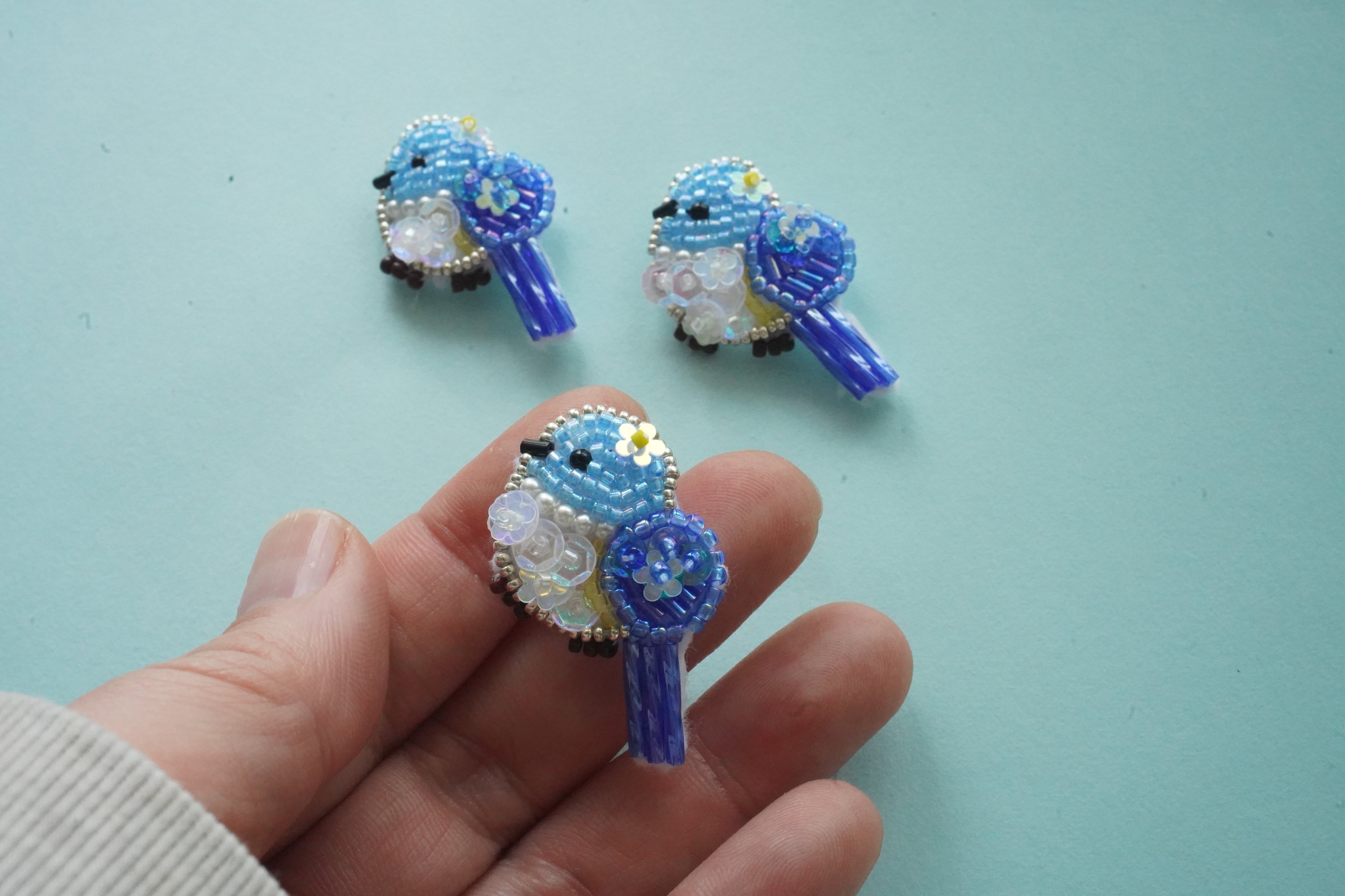 【4/5 21:00】ルリビタキのブローチ