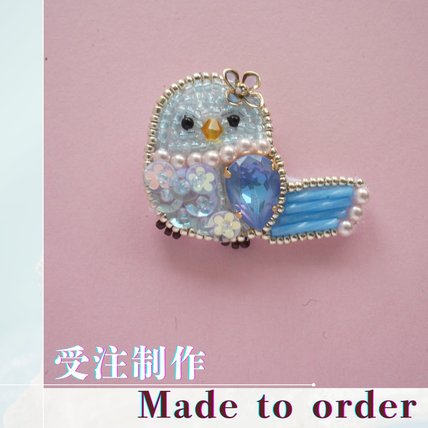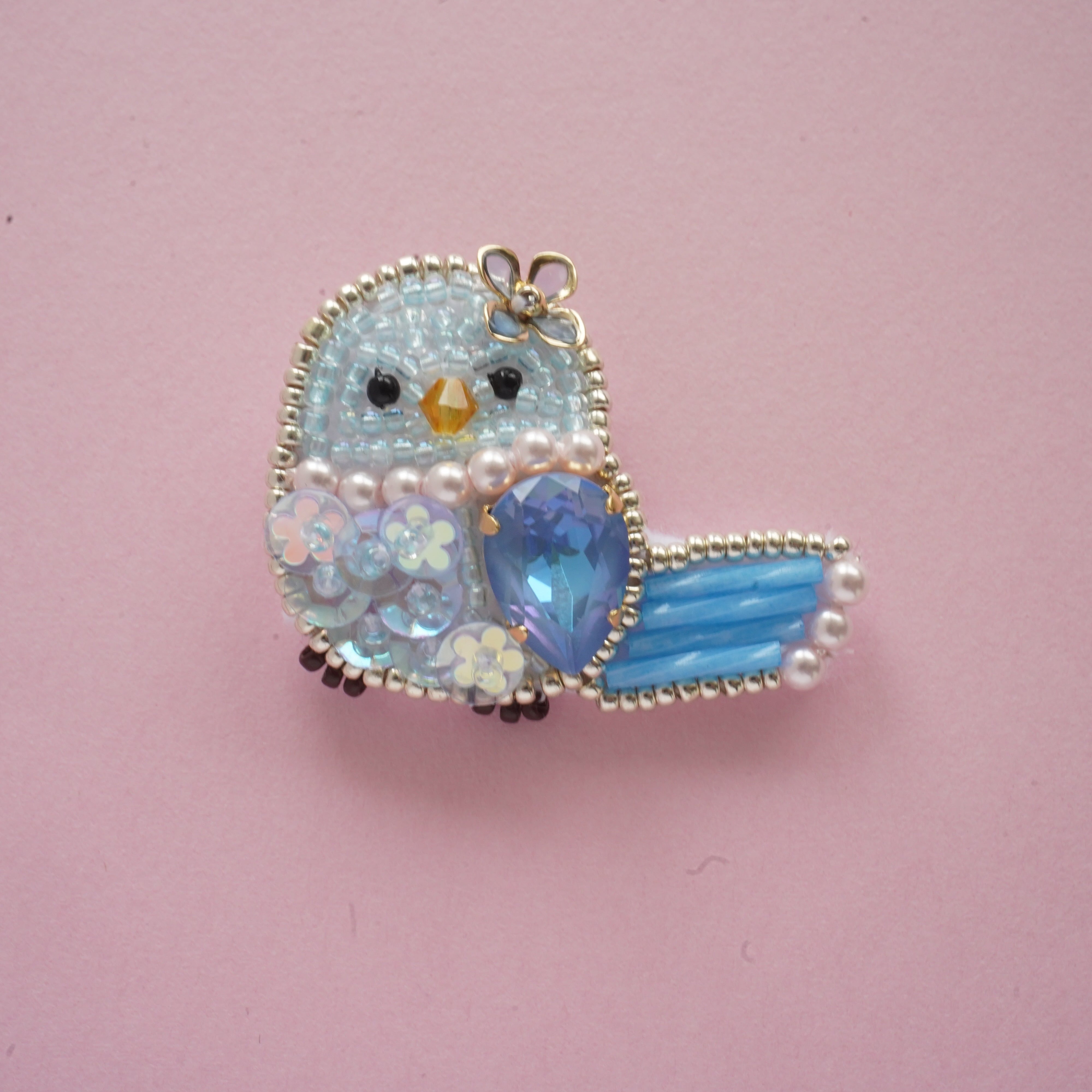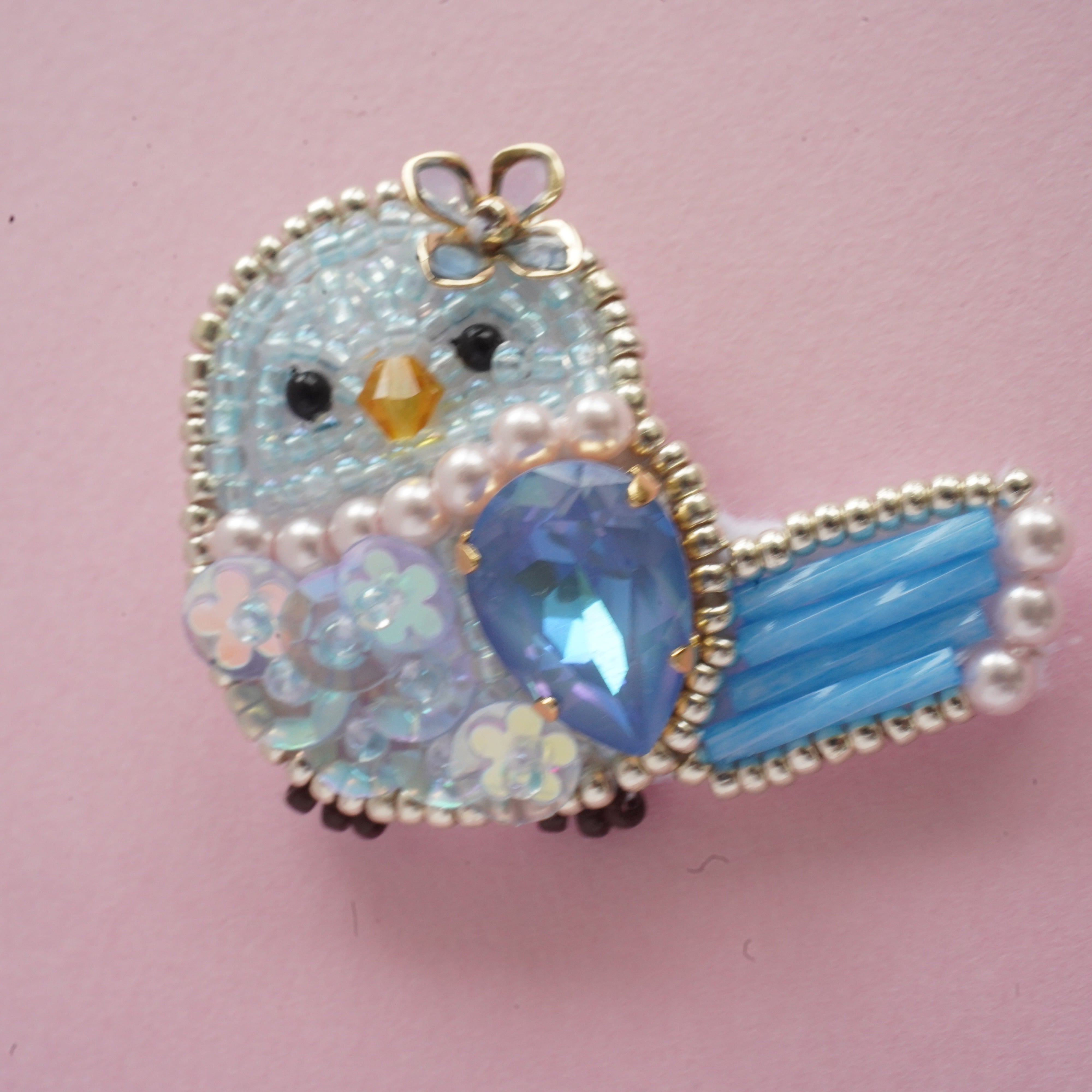 幸せの青い鳥のビーズ刺繍です。